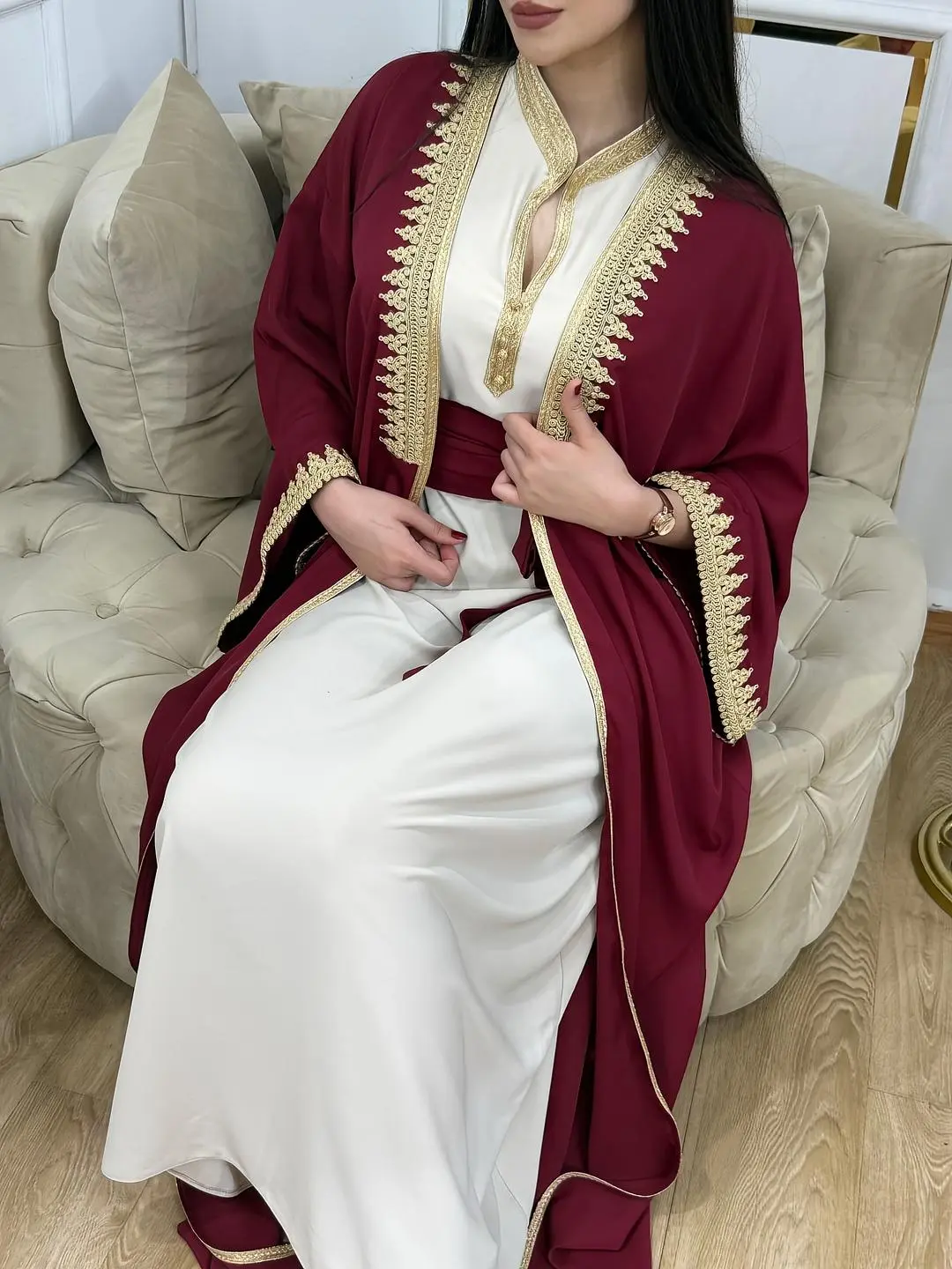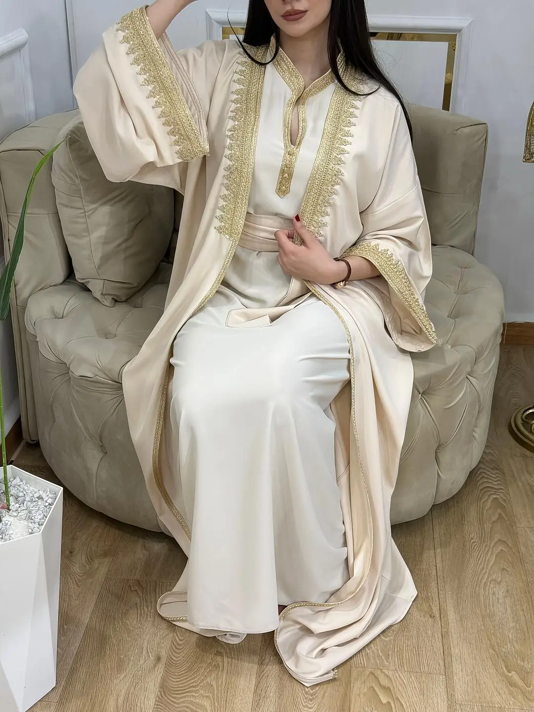 قفطان نهاد هو اختيارك الأمثل لو بتحبي الأصالة والذوق العصري. تصميمه الراقي بيجمع بين الفخامة والجمال، ويعكس الأنوثة في أحلى صورها. التفاصيل الذهبية بتخليكي تتألقي في كل مناسبة.